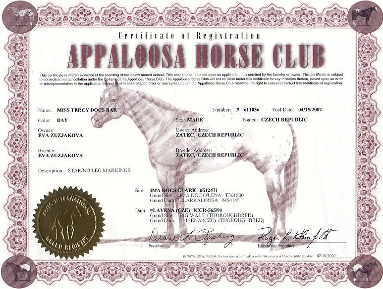 Zařazena do chovu ApHC v r. 2005